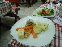 Устав от все включено, первый раз поехали по системе – завтрак, ужин. Ели в ресторане с видом на бассейн(кажется Терраса). Столов свободных всегда была масса. В очереди ни за чем не стояли. Завтрак считаю обычным и в то же время хорошим(по сравнению с континентальным в Европе или Тайланде). Как всегда яйца, омлет, нарезки сыра и колбасы, каши, мюсли, молоко, фрукты, овощи, фасоль, масло, паштет, булочки, джемы и т.д. Обедать мы практически не ходили, так как наедались с утра, а в течение дня лопали фрукты или овощи, что за очень небольшие деньги можно было купить в супермаркете, находящимся в пяти минутах ходьбы от главного входа в отель (при выходе из отеля направо по дороге к шоссе. Супермаркет на противоположной стороне шоссе.) Пару раз ходили обедать в пиццерию, расположенную у бассейнов. Пицца была очень даже ничего. Единственное, что конечно намного дороже у кого не все включено платить за еду и напитки. Тоже пиво и кусок пиццы стоят на порядок дороже, если дойти до того же супермаркета и там купить. Рядом с супермаркетом есть и пекарня, и сэндвичная и пиццу пекут и другие магазинчики. Но дальше нам перестало везти. Обычно неприхотливые (смотри все мои предыдущие отзывы на туры.ру здесь оставляю отзыв первый раз, ни разу на еду не жаловались), с ужином в отеле явно что-то начудачили. Многообразие блюд было испорчено их плохим приготовлением. Не знаю, может нам просто не повезло, и шеф повар может главный заболел, а вместо него прислали непрофессионала. Но есть было просто невозможно. Блюда были пересушены, например рис, рыба, мясо. И хрустели на зубах, но не от того, что зажарены, а от того, что обезвожены. Выбор рыбы и мяса был небольшой. Отдельная песня была с макаронами. Тут-то мы думали, не проиграем, так как их невозможно испортить. Макароны с сыром самая клеевая вещь. И мы были уверены, что наконец-то поедим. Но не тут-то было. Макароны были либо разварены(разваливались во рту в порошок), либо были недоварены. Но не подумайте, что мы путаем недоваренные макароны с макаронами состояния аль денте. Это были реально недоваренные макароны, которые при разжевывании прилипали к зубам и отодрать их можно было только путем отковыривания пальцем. По той же причине невозможно было есть все остальные пасты или макароны, впрочем, это одно и тоже, с добавками (мясо, сыр, фарш и т.д.), которыми изобиловал ужин. Картофель не доварен. Кура с жирной кожей. Одни кольца кальмаров в панировке спасали да огурцы с помидорами, но не будешь же есть их каждый день. В первый день мы подумали, что просто придираемся. На второй начали напрягаться. На третий играть в игру, чтобы такого найти поесть. На четвертый мы ушли искать кафе, чтобы там поесть. Хорошо, что при заезде в отель мы отказались от все включено за 15 евро с человека, а то бы, чувствую и с обедом бы попали. Единственное, что нам понравилось, за время ужина, это то, что не имея права на напитки за ужином(только за доплату) мы безнаказанно приносили свои напитки. И хотя к нам подходили официанты с вопросом - какие напитки мы хотим приобрести. Т.е. у них все это происходило на виду, но замечаний нам ни разу не сделали. Что касается ужина, то мы набрели на замечательный ресторан «Атос»(находится в 2-х минутах от супермаркета вверх по улице). Отличная русская и европейская кухня. Никак не ожидали, что в Черногории могут готовить так 