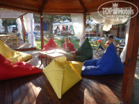 У бассейна в 8 утра по местному времени места было уже не найти. Нас, впрочем, это не касалось. Привычка вставать на работу в 7 часов не давала покоя на отдыхе. Поэтому, проснувшись в 5(разница летом с Москвой -2 часа) мы по очереди ходили занимать лежаки, а потом падали спать до завтрака. Кстати, многие в это время выходили. Видимо, у всех такая тема была, не будешь же ставить будильник каждый день.))) Мы ходили на море (4 минуты) прямо с лежаков от бассейна, поэтому за лежаки на пляже не платили. Море было достаточно холодным (+21), что особенно чувствовалось при температуре воздуха +28. Вода была чистая. Далеко отходить от берега не надо. Почти сразу глубоко. В бассейнах вода была до обеда холодная. Но мы вскоре придумали игру. Идешь купаться на море. Дрожа забираешься в воду. Выскакиваешь оттуда, а потом идешь в бассейн. Так вот бассейн после моря как парное молоко. Удивляли люди, которые занимали лежаки с утра и потом так ни разу и не появлявшиеся до вечера. Русскоговорящие. Одна семья. Мама, папа, дочка с мужем занимали сразу, аж 6 лежаков. Два на солнце, четыре в тени. И вот эта семья большую часть времени у бассейна отсутствовала, но лежаки занимала каждый день с усердием. Сама обстановка вокруг бассейна, за исключением аниматоров, была немного неоднозначной. Я очень люблю детей и сама мама, но когда вокруг очень много детей говорящих по-русски, но с довольно странным уклоном(а именно, матом), это я скажу вам еще то. Неоднократно, устраивающие драки. И их родители, разнимающие детей с такими же словами и угрозами. В общем, веселенькая такая была обстановка у бассейна. Понравился нам закрытый бассейн. Прикольно, летом поплавать в горячей воде))) Там же, джакузи.