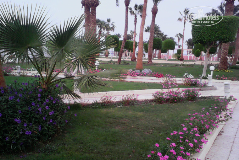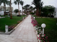 Территория отеля очень большая,зелёная и красивая,высоченные пальмы,различные причудливо подстриженные кустарники,деревья,всевозможные цветочки,птички поют,просто настоящий сад.Дорожки аккуратно выложены плиткой,чисто,садовники постоянно что-то стригут,сажают,поливают,косят газоны,вовсю облагораживают.Вечером все дорожки подсвечиваются фонариками.