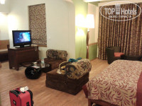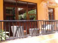 Номера: номера хорошие, большие, есть с балконами, есть без балкона. У нас был без балкона, большая комната с большой кроватью, кресла, шкаф, столик, плазменный телевизор (не во всех номерах), набор для приготовления чая и кофе, мыло, шампунь, крем, тальк, шапочки для душа, фен - все есть. Номер у нас был без балкона и вид из окна был на дом местных жителей, поэтому мы шторы не открывали))) а на балкон ходили к соседям, балконы выходят во двор отеля, поэтому там все хорошо ))