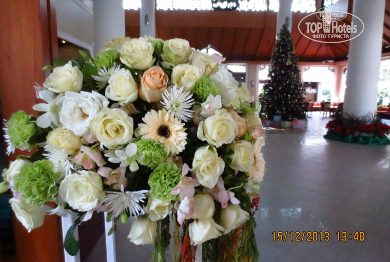 Всем привет!!!! Решила написать отзыв об этом отеле!!!! Отдыхали в нем в период с 14.12.13 по 23.12.13. Отель очень понравился!!!! Он такой уютный, весь утопает в зелени, белочки по пальмам бегают!!!! Сервис отличный, но в Тае наверное по другому не бывает!!!! Так приятно когда они тебе всегда улыбаются))))) Номер убирали каждый день, меняли полотенца, белье, убирали все чистенько!!!! Единственный минус отеля, рядом нет кафешек. Через дорогу есть ресторан MAYA, но чтобы попасть туда, надо перейти две скоростные трассы, а это такой экстрим)))) Один раз сходили, больше не рискнули!!!! По советам отдыхающих сходили в кафе у Гоши, но, если вас не смущают куры под ногами, дерущиеся петухи, бегающие по столам, то можете сходить))))) Мы один раз сходили, на все это посмотрели и больше не пошли)))) Вечером можно сесть на тук тк и доехать до Амбассадора, там на противоположной стороне кафешек пруд пруди, местные при такой конкуренции делают все, что бы вам понравиться. Порция больших креветок стоит 250 батт. Если сильно голодные, можно их заказать две порции и объедитесь, так же огромный выбор рыбы (сомы, и еще какой то, название не помню), свиные ребрышки, курица, лягушки, крабы, омары. Омары стоят от 1500 до 1700 батт. Все на гриле! Можно заказать и котлеты с пюрешкой или рисом. В общем на любой вкус. Обратно так же на тук-туке или если сильно домой хочется, у Амбассадора стоят такси. О цене можно договориться с таксистом. К Равиндре вечером подъезжают макашницы. Не советую брать креветки в кляре, кляр есть, креветок нет!!!!! Милый таец печет блинчики с бананами, вкуснятина))))) Приезжают девочки таечки, привозят суши, вкусные!!!!! Нигде ни разу не отравились, все попробовали)))) По пляжу направо пройти, сидят продавцы с фруктами, недорогие фрукты и очень вкусные, все спелые!!!! Продавцы приветливые, милые люди!!!!! Несколько раз обедали в пляжном ресторане. Самый большой чек был на 1700 батт!!!! Это со спиртным!!!! Да, в этом ресторане с 11:30 до 14:30 при заказе одного коктейля, второй бесплатно, успевайте)))) В прошлом году отдыхали в Пулмане 5*, тоже понравилось, но в Равиндре почему то мне понравилось больше!!!!! Пляж чистый, но море как и во всей Паттайе мутное, пакеты плавают. Но это все зависит от отдыхающих. Пару раз была свидетелем, приличные вроде люди, с детьми маленькими, фрукты поели и все отходы запихивают под лежак((((( Так не приятно, вы же сами сюда вернетесь, неужели приятно лежать в свинарнике???? Мусорок ксати при этом на самом пляже много, но опять таки, все зависит от людей)))) В отеле много иностранцев, ну и китайцев хватает!!!!