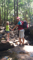 Всем привет. Были в отеле с 26 декабря по 3 января 2014 г. Летали от Солвэкса. Встречающая сторона на ГОА - Конкорд Вояж Тур. Перелет 8 часов а/к Россия. Аэропорт военный , очень простой , все понятно, но всё ооочень долго... Разводилово в аэропорту: просят показать посадочный с квитанцией на багаж, внешне выглядит как будто хотят сверить, а потом пытаются доказать, что нашли нужный чемодан и просят денег! При погрузке чемоданов в автобус тоже просят денег. Дорога до отеля 1,5 часа ( все зависит от кол-ва заездов в другие отели). Заселили быстро, хотя мы приехали рано утром. Номер Delux 1 этаж. Номер не понравился. Окно не открывается, полок в шкафу нет, холодильника нет, фена нет, влажно в номере. Небольшая торговля на ресепшене (100$) принесла результаты. Переехали в номер 220. Номер большой- две комнаты, в каждой кондиционер ,отдельно кухня, плита, микроволновка, холодильник, посуда, но фена всё равно нет :). На балконе натянули веревку (брали с собой) и получилась отличная сушилка . В номере убирались каждый день. Оставляли по две открытки с видом Питера. Территория отеля небольшая ,но очень ухоженная и чистая, а т.к. был Новый Год, еще и украшена как в сказке. Сам отель располагается внутри жилого комплекса , где сдают целые домики .Поэтому кажется что территория отеля огромна .Бассейн располагается по правой стороне при выходе из отеля. Бассейн в отеле нормальный, не глубокий, с детским отделением, но прежде чем пойти купаться проходишь процедуру регистрации и приема душа, сидит смотритель и записывает. При первом же выходе из отеля получаете всю инфу от местных экскурсоводов. До пляжа минут 5, и вот ОНО! Океан ,волны и конечно шейки. Мы остановили свой выбор на Malibu Ребята классные очень внимательные . Рауль говорит и понимает по-русски. У его же без проблем меняли $$. Завтракать ходили в шейк т.к. в отеле завтрак однообразный (омлеты каждый день) хотелось большего, да и ребенку быстро надоело. В шейках бесплатный WiFi, просите пароль. Покушать у нас выходило около 1000 рупий (на троих), всё вкусно, порции огромные ,лично мы их не осиливали! Экскурсии брали у Марио (отличный парень!) , у него весь сервис отлажен до мелочей и намного дешевле (для примера экскурсия от туроператора стоящая 100 долларов на человека, нам обошлась в 90 за двоих взрослых с 1 ребенком на индивидуальном авто!). У него же можно брать и местную симку ( 200 руп) (связь дешевая) т.к. самим ее покупать проблематично - выдают по паспорту и при наличии фото. Все очень понравилось. По поводу торговли на пляже: покупать лучше после обеда , цены опускают хорошо. Парео 150-200 рупий , шкатулки 200-250 рупий, цепочки 150-200 и т.д. Большой цветной слон первоначально стоил 3500 рупий -итог торговли 1000 рупий. Торгуйтесь ,назначайте свою цену (даже не прилично низкую) и стойте на ней -отдадут. Возьмите конфеты и шоколадки( особенно Аленку) , местные ребятишки их очень любят. Если поедете к водопаду одевайте удобную обувь т.к. придется идти по камням и это не тропинка. А также не светлую одежду т.к. к водопаду нужно ехать на джипах ,а дорога очень пыльная . Вечером в отеле жизни нет .Все на пляже либо по магазинам. В ближайшей деревне (мин в 15 пешком, из отеля направо по асфальту и на первом перекрестке еще раз направо) есть супермаркет. там можно приобрести продукты и сувениры на 2 этаже. Цены низкие(полотенца хорошего качества с рисунком Гоа 200 руп.)