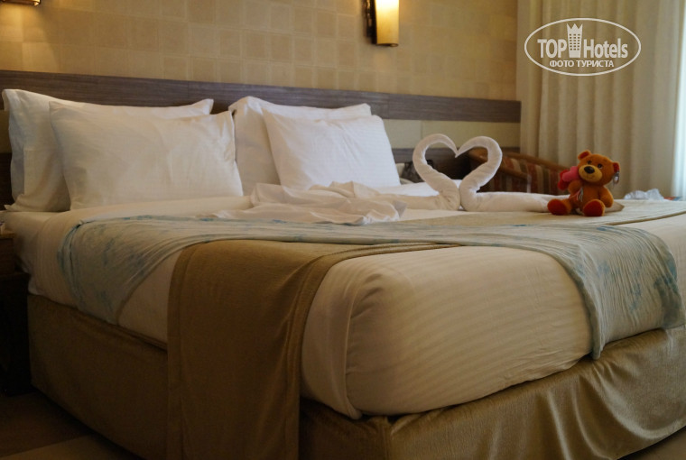 Более проблем с персоналом не было. Все очень приветливые, отзывчивые… да, медленные, фен просила 3 раза)) на 4 все-таки принесли. По просьбе принесли и фумигатор. Убирались каждый день, а за чаевые в размере 10-20 рупий своеобразным образом составляли баночки в ванне, сворачивали одежду, а на кровати появлялись лебеди, скаты и сердца. Сам номер новый, просторный, ТV, кондиционер и потолочный вентилятор работали исправно. Каждое утро обновляли полотенца, мыло, чайный набор.