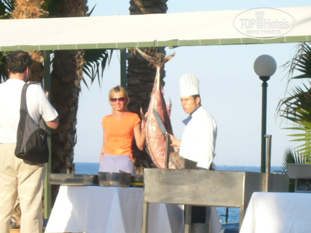 Отель вполне соответсвует 4 звездам. Шведский стол вполне нормальный. Каждый вечер гриль (курица, рыба, печень, мясо), вечерний суп в 23-00 для тех кто не наелся за день. В баре все время в течение дня можно лопать булочки, картофель-фри и турицкие чисбургеры. Единственное, что меня немного разочаровало, это не большая территория отеля. Трехэтажные домики соят слишком близко друг к другу. На территроии отеля размещено все очень компактно. Первая береговая линия. Обслуживающий персонал дружелюбный. В соседний отель с 24-00 можно сходить на дискотеку бесплатно.