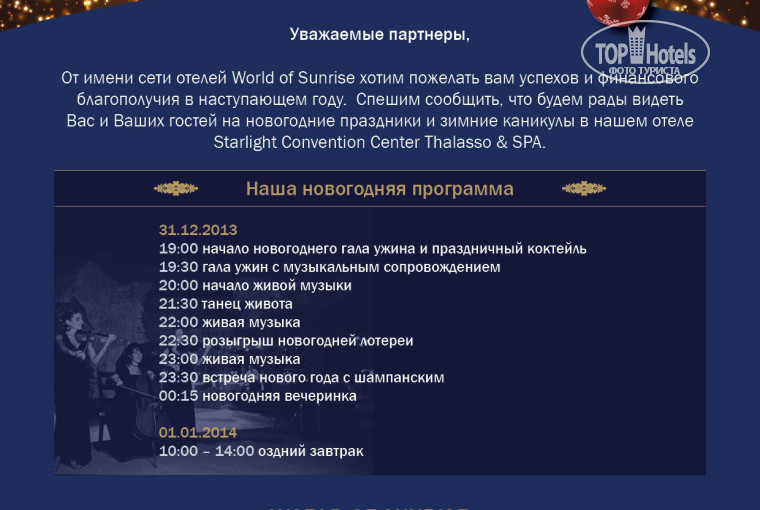 Период с 28.12.2013 по 04.01.2014 (7 ночей), Новогодняя концепция.