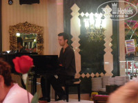 Хороший готель. Територія вилика, багато зелені. Харчування гарне, але малий асортимент фруктів.М'ясних страв дуже багато, солодощів теж. Офіціанти привітні, завжди швидко обслуговували. Вечеря завжди проходила на терасі на свіжому повітрі. Сніданки мали великий асортимент страв.