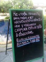 читала, что не разрешают ночью в бассейне купаться (и правильно). вечером, около 10 часов они сыпят в воду какие-то "реагенты", возможно просто хлорка, я не специалист. все делается для нашего и вашего здоровья и спокойствия. за ночь все это там растворяется, так что уж лучше перетерпеть. это не критично.