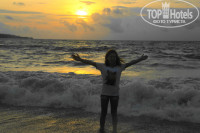В плане лучшего пляжа и моря можно пройти направо - метров 200, общий пляж, очень широкий и удобный, море глубже и чистое (в море у отеля из-за того, что он находится с другой стороны мысы, было достаточно много мусора и мутноватое), можно пройти еще дальше, за другой мыс, там пляж тоже очень красивый и удобный, людей очень немного, море более глубокое, далее идет Grand Hyatt Bali и строящийся отель на месте Inna Putri Bali 4 , в этих местах самый, на мой взгляд, лучший пляж с небольшими деревьями и лучшее море на Нуса Дуа.