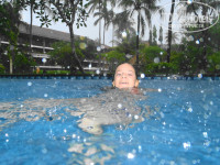 Общий бассейн у отеля мне не очень понравился, мы с дочкой были в нем пару раз - достаточно мелкий, есть пару мест в центре поглубже, 1,5-1,7 м. В бассейне бара на воде нет, но есть достаточно много игр на воде - в мяч, поло, всякие фитнесы и т.п. (немного отдавало турецкими аниматорами).