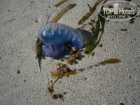 Первые 2 дня было холодно,потом жарко но сильный ветер у океана,такой,что не смотря на жару было холодно-приходилось сидеть у бассейна,но день на 5-6 уже стало лучше и с океана не вылезали, флаг был в основном красный,вроде как из-за медуз,3 раза был желтый,2 раза зеленый,вода теплая и не реально прозрачная и чистая.