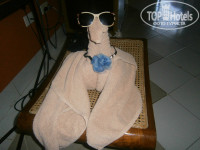 Минусы: фоток букета и арки нет,объясняли все на пальцах,выбрала тропические цветы,коими в результате оказались лилии и герберы. арка должна была быть по описанию с цветами,абыла с шарами и лентами(хотя может это из-за ветра) украшение места церемонии весьма скромненькое,позже выложу фото, в парикмахерской не умеют делать кудри утюжком-делали своей допотопной плойкой,на которой сгорела куча моих волос( косметику несите туда свою-у них есть но кошмарная даже по виду,пока одна парикмахерша красила меня,вторая красилась моей тушью)))Номер не украсили,хотя должны были. С церемонией опоздали на час из-за чего пришлось пропустить фуршет и бежать бегом фотографироваться.