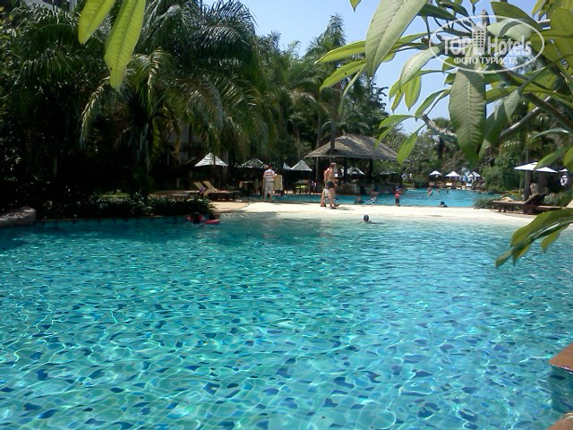 Для нас Ravindra- лучший отель в Паттайе, потому что есть свой пляж и вдали от городской суеты. Так приятно приехать вечером из города и плюхнуться в тёплый бассейн, окруженный экзотическими растениями. Тихая музыка льётся как-будто с небес и ты лежишь в воде и любуешься звёздами. Пляж песчаный с пальмами вместо зонтиков. Завтраки-достойные, шведский стол- есть всё: супы, мясо, яичница, сосиски,гарниры, овощи, фрукты, соки, а выпечка-просто песня. Номера большие, уютные с балконом и видом на бассейн. Рядом с отелем магазин 7/11, за ним турагенство Река-Тур, масажный салон и аптека. Через дорогу несколько кафе. Мы ходили к Амбассадору поесть, купить фрукты или просто погулять в Мимозе, так же там много недорогих масажных салонов. Экскурсии брали в основном на острова и на 2 дня. Ко Чанг+ Ко Вай (Корал Тревел)- природа, море- незабываемые впечатления. Пхи-Пхи Ной(Река-Тур)-Супер!!! Сами ездили на военный пляж-тоже понравилось. Полёт Гибона- страшно! Мы всегда с радостью возвращаемся в Равиндру!