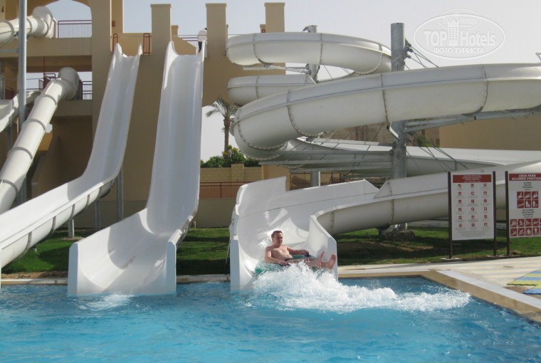 Территория очень большая - горки супер с теплым бассейном, еще 2 бас. с подогревом, + конечно детский бассейн тоже теплый с огромным кораблем, все детки от него в восторге, есть детская площадка с горками!