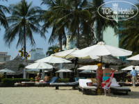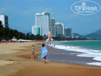 Бассейна, как и почти у всех отелей в Нья Чанге - нет. Море -200м. Торговцев на пляже к туристам не подпускают. Стоят красные флажки на пляже,4шт., и все, за них ни ногой! Сам хочешь? Иди, смотри. Нет у вьетнамцев назойливости. Если что и предлагают, то тихо, и улыбаясь, не так, как например в Турции! На тебя смотрит, когда предлагает на пляже что-то, и ты не знаешь что будет, если откажешься. Янычары, одним словом!
