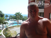 Вид на море мы не оплачивали, но за 20$ нас поселили в центральную часть отеля с прекрасным видом.