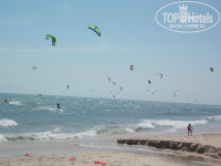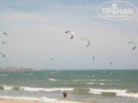 Море с утра довольно спокойное, можно устроить пробежку по береговой линии, вода теплая, купаться начинали в 8-9 часов утра, волн в это время меньше всего, после обеда море изобиловало волнами и бесконечным количеством кайтсерферов...