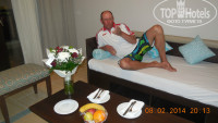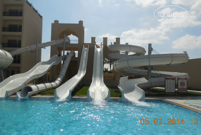 Этот отель поразил своим качеством обслуживания и сервиса.В Египте отдыхаем каждый год , отель привлек своим местоположением, т е близостью к аэропорту, ценой и новизной(любим совсем новые отели). Приехав в него, сразу почувствовали дружелюбную ,домашнюю атмосферу,т е не надо выстраиваться в очередь около ресепшна,в ожидании номера получше, нам предложили присесть в удобные кресла и заполнить карточку гостя. Далее , без всякого промедления были даны ключи от номера и мы пошли его смотреть. Номер( у нас был куплен стандарт), к нашему удивлению ,состоял из двух комнат,с двумя плазменными панелями и прекрасной кроватью кингсайз ,отличным матрасом и превосходной немецкой сантехникой. балкон в номере присутствовал,и довольно большой. С него открывался вид на соседний Steigenberger Al Dau Beach 5*и променад,через который мы ходили на свой пляж. Номер нам достался отличный ,но вскоре отстроится корпус со стандартными номерами и всех ,кто выкупит стандарт будут заселять в него. В первый же вечер мы поняли, что качество питания в этом отеле лучше,чем в др посещаемых нами пятизвездниках. Для сравнения приведу пример: в первый же вечер , на ужин были предложены королевские креветки, язык отварной и семга ,запеченная в рулете,конечно это еще не весь выбор, питанием мы были потрясены,довольно часто на завтрак предлагался окорок ,почти тамбовский, что было удивительно для Египта,а также бастурма вяленая ,все на тот же завтрак))),это не считая каш,йогуртов ,омлетов,блинов ,сосисек и сыров всевозможных. Также в концепцию питания отеля включены пакетированные соки . Территория и пляж: для нас не было минусом ,что территория не слишком озеленена,да основную часть ее занимают бассейны,это практически водная акватория,есть два аквапарка ,для взрослых и детей,горки новые ,отличные,есть труба , камикадзе и воронка,вообще горки достаточно серьезные.Лежаков много везде, есть также плетеные диваны для загорания ,шезлонги в воде.Пляж находится через променад и территорию отеля Steigenberger Al Dau Beach (он еще круче ,но и соответственно в разы дороже ),минут пять-семь ходьбы,вообще не засекали,но это близко,но для особо ленивых есть гольф кары ,они -то и подвезут вас прямо к пляжу).На пляже много лежаков,в феврале не сезон, было немного ветренно,но все работало и пляжный кафе - бар,в котором повар бесподобно готовит рыбное филе в кляре ммммм,пиццу ,картофель фри,гамбургеры и шаурму... очень вкусно. Мороженое на пляже превосходного качества,Нестле,разное и сколько хотите ,без ограничений. Кстати, на пляже есть катамараны и каноэ бесплатно . Для любителей спорта ,в отеле есть тренажерный зал.Вечерами в нашем отеле проводились детские дискотеки ,далее следовали вечерние шоу аниматоров или приглашенных артистов. В первый же вечер ,когда мы прилетели ,было шоу Мамма Мия,очень порадовало! Кстати , в каждом баре отеля ,при заказе пива или кофе,да неважно чего,вам обязательно подадут розеточку с орешками и чипсами,пустячок ,а как приятно!!! Скажу честно,меня поразило отношение всего персонала,очень дружелюбное,даже слишком,чувствуется немецкий менеджмент отеля,хозяин египтянин ,а менеджеры немцы,вот такая странная смесь восточного гостеприимства и немецкой педантичности)),здесь одно дополняло другое! К слову,хочу отметить необыкновенную чистоту и порядок везде,может новый отель ,а может вооб