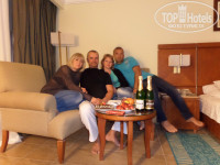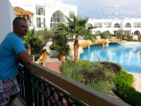 Мелия Шарм встретила нас около 9ти утра. Зная порядки, были готовы ждать. Еще из дома я отправил в отель две заявки на комплименты (как постоянный гость и годовщина свадьбы), ответ пришел,но как это все будет мы не знали.И вот, нам сразу одевают браслеты и просят отдохнуть лобби-баре пока готовят наши "очень хорошие номера". Особо не заскучали - через час нас проводили в комнаты (4105....) Чисто,все в порядке( легкая пошарпанность не в счет), все работает.Белоснежное постельное и полотенца. У второй пары тоже. Замечательный (на мой взгляд) вид - лобби, бассейны и море!!! На столике нас ждала тарелочка с яблоками , конфетами и открытка-приветствие от менеджера отеля. Приятно)))). Почти весь день впереди - начнем с территории.