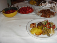 Проживание: Приехали уже вечером, было темно, особо ничего не увидели. При поселении предложили напиток какой-то, но его пить не стали, уж больно кислотного цвета :) Поселили сразу, номер удобный, отремонтированный (крыло, которое находится слева от входа, окна выходят на игровую площадку (тир, качели и т.д..). Но мама хотела вид на море... Так что я пошла просить переселить нас. Ресепшионист сказал, что все занято (ну кто бы сомневался!), но тут подошел какой-то дядька, наверно администратор. Я ему все объяснила, сказал, чтобы подошли завтра с утра. Подошла я около 10, дали мне ключи - сказали идите посмотрите, устраивает ли Вас)) очень даже устроило, потому что через 30 метров было море! Номер на первом этаже конечно имеет свою специфику - я перелазила через балкон, когда лень было обходить через внутренности))) Номер небольшой, но все необходимое имеется, по телевизору пара русских каналов приятно обрадовала.