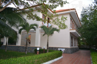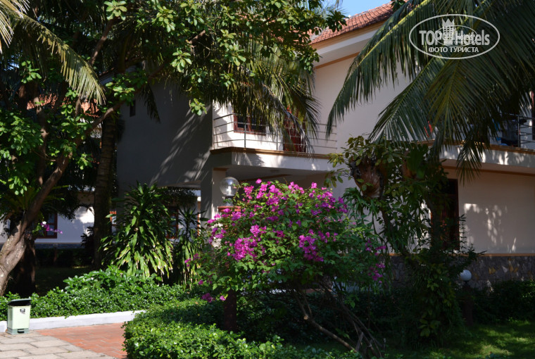 Территория отеля небольшая, но милая, под тенью пальм. Отель состоит из нескольких корпусов. Три двухэтажных корпуса: два из них с номерами стандарт, один с номерами супериор. Несколько (по-моему два) одноэтажных корпусов с номерами супериор и бунгало. Номер стандарт от супериор отличается площадью и в супериор есть ванна, в стандарте душ рядом с унитазом. Недостаток двухэтажных корпусов в том, что на первом этаже нет балконов, вывесить мокрый купальник посушиться некуда, да и просто вечерком посидеть негде. На первом этаже в номере прохладнее, пол даже холодный. В номере супериор две полноценные двуспальные кровати. В номере есть все необходимое: холодильник, ТВ, фен, чайник, средства гигиены. Отсутствует сейф, халат. Тапочки- многоразовые вьетнамки. Не хватает крючков в ванне, сушилки.