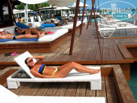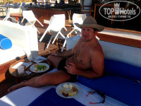 Рядом с отелем, если стоять лицом к морю, справа пройдите вдоль пляжа 200 метров и будет классная кафешка тоже с бесплатным вай-фаем - The Beach Board. Там очень вкусно и дешево. Классные пиццы и каждый час после 6 или 7 проходят какие-нибудь акции)). Мы там с мужем частенько встречали закат.. очень красиво ночью.. вдалеке горит огнями порт.. безумно красивое зрелище..)