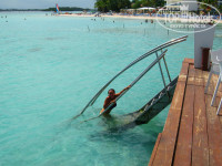 Карибское море.. Прекрасный пляж, белый песок, вода цвета аквамарин... Подойдет и для детей и для взрослых. Если слева заходить в море, немного проходишь и мне было по подбородок (рост 172см.), а справа мелко, долго идешь - по пояс, подальше - по грудь. Волн практически нет. Если вы любите волны, вам не в Бока-Чику, а в Пунта-Кану. Слева от общего пляжа платный ресторанчик Пеликан, который принадлежит этому отелю, там бесплатный вай-фай и удобные мягкие лежаки, сделанные как большая кровать, но надо что-нибудь заказать. Мы брали завтраки шведский стол - 9$ на человека или свежевыжатые соки от 170 до 250 рублей... было вкусно)))