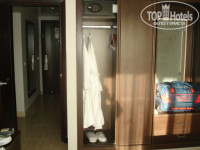И тут мы неожиданно для себя увидели вместо стандартного номера, который был предусмотрен, шикарный двухкомнатный номер. Мебель новая, много шкафов, удобные кровати с хорошими постельными принадлежностями, халаты и тапочки, сантехника новая, туалетные принадлежности, полотенца, в каждой комнате телевизор-плазма, журнальный столик, кресло, стол, а на столе ваза с фруктами. Холодильник заполнен водой, пепси, мериндой , спрайтом ( в последующем запасы питья пополняются каждый день), так же есть чайник, чайная посуда и кофе, чай, сахар. В номере бесплатный сейф. Убирали ежедневно , даже очень прилично, придраться, даже если бы захотелось, не к чему!