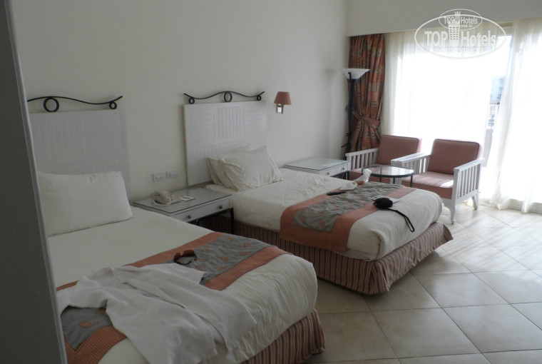 Недавно вернулись из Египта. Отдыхали с мужем. Отель очень понравился. Соответствовал нашим ожиданиям (спокойный, тихий, без кучи детей, без горок: другими словами нам именно релакс и нужен был). По приезду в 8 утра нам выдали браслеты и мы пошли на завтрак. Далее нам выдали ключи и сопроводили в номер 317. Номер хороший, с видом на бассейн и море. Не работал сейф - быстро заменили по звонку. По приезду предоставляется пепси, фанта, спрайт единоразово, далее только вода. В номере есть все необходимое: халаты, тапочки, фен, шампунь, мыло, зубные щетка и паста, бритва и тп (При расселении на ресепшене дали 10 долларов).
