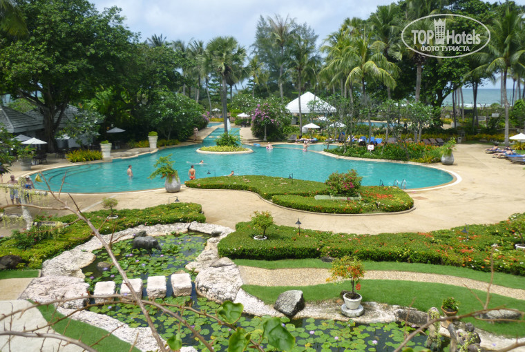 Территория вытянута вдоль моря примерно метров на 500. Очень большая, ухоженная, зеленая, красивая. Бегают кролики, есть свой сад орхидей-очень красивый. На территории 5 бассейнов.