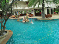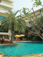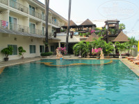 Отдыхала с сыном (10 лет). Отелем остались довольны, удачное расположение - не в центре и в то же время можно быстро доехать на тук-туке до центра, пляж через дорогу. рядом выгодный обменник, разные магазины - 7/11, Family Mart, и ночной рынок. В отель заселялись уже поздно почти ночью - рейс задержали. У нас был номер в главном корпусе на 8 этаже - 8007, вид на отели Джомтьена и справа море. При заселении попросили 1000 бат, но у меня были только доллары. Без проблем договорились - оставила паспорт в залог, а утром обменяла доллары и забрала паспорт. Сейф дали тоже без проблем - на первом этаже около лифта есть небольшая комната. в которой стоят шкафчики ячейки. Дают ключ от ящика, в котором стоит сейф (кодовый замок). Фена в номере нет - нужно на ресепшн спрашивать - мне принесла девушка-уборщица, я им весь отдых и пользовалась. В номере довольно уютно, хороший столик с зеркалом в полный рост, пуфик, два стула со столиком круглым. холодильник в шкафу, просторный шкаф с вешалками. Балкон небольшой, но места достаточно. Проблему с сушкой одежды решила просто - натянула на балконе бельевую веревку привезенную с собой (она там и осталась:).
