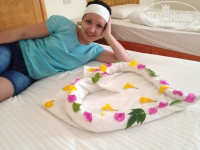 Прилетели в отель в 10 часов, номер дали без денег, сразу же #3036. Все чисто, территория большая, все убирают. Номер большой, но шумо изоляции никакой. Кровати очень удобные, порадовал в номере чайник+ чай, кофе, сахар каждый день докладывали. Комары были, брали из дома фумигатор. Воду каждый день докладывали в холодильник. Анимации ни какой по вечерам, нам было скучно, дискотеки платные по 15% , кто ходил -разочаровались. Есть ужасные бармены, которые прежде, чем налить детям колы, просили принести им стаканы, я была от этого в шоке. , жаловались на рессепшен. Прежде, чем остановиться в номере, все проверьте- полотенца, сумку пляжную, бар, при мне женщину сняли с автобуса из-за того, что у нее в номере не оказалось этой сумки- цена штрафа-150$$$$..... И никто, Вас слушать не будет-говорят была и все!!!! Море - это Все!!!! Очень красивое!!!! Берите из дома-очки, маски и Т. Д . Мне не понравилось , что в этом отеле дефицит зубочисток , и бумажных салфеток- просто караул, неужели выгодно каждый день стирать салфетки , может лучше бумажными запастись.... Мухи замучали во время завтрака и обеда....., обед до 15 часов, они уже чуть ли не выгоняют в 14, вот это очень большой минус., такая же беда и во время ужина. Мы ходили в итальянский , там хоть мух не было.... Вроде бы все написала)) будут вопросы - задавайте!!!