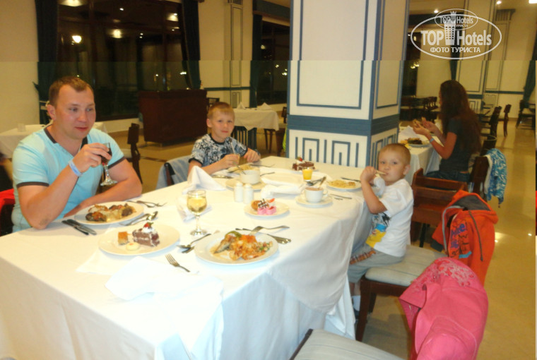 Лично мне питание понравилось, дети каждое утро блинчики горячие лопали. В первые дни мы накладывали всего по-немногу,потом уже примерно знали вкус всех блюд.Утром много блюд из яиц, каша всегда есть овсяная, йогурты, выпечка(про нее можно много писать-СУПЕР!). Вобщем, меню разнообразное,много овощей, морепродукты, курица, печень,мясо, вечером на террасе барбекю. Из фруктов финики,апельсины,бананы, мандарины(очень сладкие),гуава,всегда были фруктовые салаты,не очень разнообразный ассортимент фруктов.Мы лично покупали дополнительно фрукты у Миши.