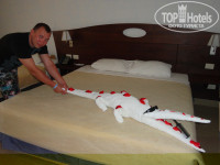У нас был номер на 2 этаже с видом на детский бассейн,тихое и спокойное местечо.Номер стандарт: туалет с ванной совместный,с горячей водой проблем не было; шкаф-купе с сейфом; кровати; кресла с торшером,TV; балкон.Убирали номер каждый день,мы оставляли по1$,каждый день нас ждал сюрприз из полотенец или покрывала,фигурки ни разу не повторялись. Хочу отметить, на второй день побежали на встречу с гидом и забыли закрыть сейф(там были документы,деньги,телефоны,планшет),проводилась уборка,ничего не пропало! Да и вещи где не бросишь(на пляже) там и найдешь,никто ничего не возьмет.