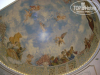 Приехали мы вечером, в 18.00, поэтому заселили быстро. В холле чудесный бар и статуи черных коней на балконе. На потолке картины богинь.