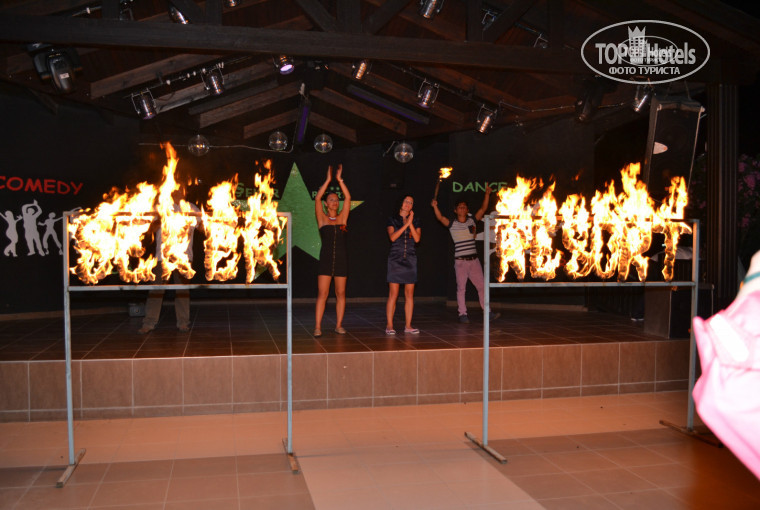 Обратный вылет был на 6:00 (в аэропорту выяснилось, что в 7:00), из отеля забрали в 1:30, т.е. фактически десятой ночи в отеле не было. На 9 мая в отеле устраивали представление с прекрасной танцовщицей, коктейлями и дискотекой в ретро-стиле.