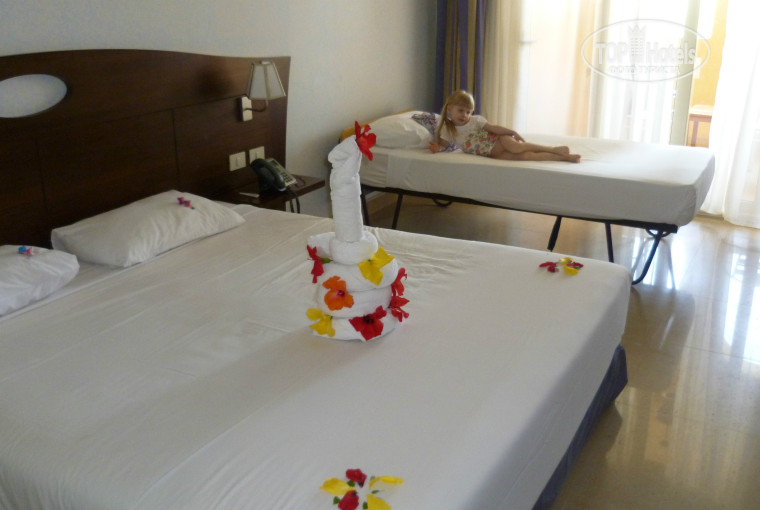 Всем здравствуйте! Была в этом отеле в период с 30.03-13.04. Отель хороший, чистый. У нас был номер стандарт трил+ ребенок. По приезду попросили фемели, так как пегас их не продает. На рецепшен попросили официальную доплату 10$с человека=30$ в сутки. Для нас это было дороговато. Нас поселили в хорошем номере( по цене он был дороже) вместо 1 этажа на 3. Мы ни чего недоплачивали. Убирают чисто. У нас было 2 уборщика. Первый умница Али крутил фигурки, убирал утром. Внучка ему подарила шоколадку( в этот день у нее было день рождение) ,Али ей смастерил такой торт, супер. Мы потом отблагодарили его чаевыми. Второй уборщик убирал чисто, но ни чего не крутил и не вовремя, нам приходилось вешать мешочек с надписью, так как внучка спала после обеда, и номер оставался не убран. В связи с этим хочется пожелать, давайте уборщикам списки комнат с маленькими детьми, что бы убирали утром. В остальном облуживание хорошее. Когда случались какие либо неполадки, их устраняли по первому зову. День рождение внучки отмечали в итальянском ресторане. Бронь сделали на 20:30. В связи с тем что ребенок приболел пришли в ресторан к 18:00. нам спокойно перенесли время. Испекли вкуснейший торт и поздравили внучку с музыкой. Спасибо огромное за такой подарок. Анимация хорошая, без фанатизма. Деления на народности я не заметила. Если сам будешь относиться к людям так как хочешь чтобы относились к тебе, тогда все будет хорошо. Детская аниме было не очень, сделали замечание и все изменилось. Просьба к администрации; натяните навес над детской площадкой, днем очень печет. И если можно продлите сезон подогрева бассейнов на не дней 7-10.Спасибо.