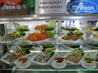 Рестораны. Главный ресторан. Завтрак, обед и ужин. Огромный выбор еды. Обслуживание на высшем уровне. В пятницу турецкая ночь. В воскресенье бранш – это завтрак плавно перетекающий в обед, без перерыва, с шампанским. Наливает тетя на входе, кидает вишенку. По еде море отзывов. Меня покорили, рыбный буфет – слобосоленная семга, тунец, копченая скумбрия и т.д. каждый день на обед и ужин без ограничения, и сырный буфет ( видов 10 сыра, и простых и с плесенью), , нарезает тут же стоящий повар, хоть всех видов. На завтрах все тот же свежевыжатый апельсиновый сок, про который идут уже дебаты: разбавлен – неразбавлен. Всегда рыба, всегда мясо, овощи, фрукты гарниры, 2 вида супа каждый день. Мое мнение выбор не огромный, зато все очень вкусно и очень качественно, что для меня важнее одного и того же не очень продукта в разных вариантах.. Для детей в главном ресторане свой уголок. Манная каша, вареные овощи, супчик (или пюре, или лапша), молоко, сухая смесь, пюре в баночках. Блендер, подогреватель, микроволновка, стерилизатор. Выпечка не интересовала, но ее море. Теперь из неприятного. В ресторан аля-карте теперь можно только в один за неделю бесплатно, остальные платно. Запись идет автоматически, есть при входе в главный ресторан терминал для записи, записался – выдал терминал талончик. Готовят в воскресенье роллы - кому интересно))) Про Гала вечера не знаю, при нас не было.