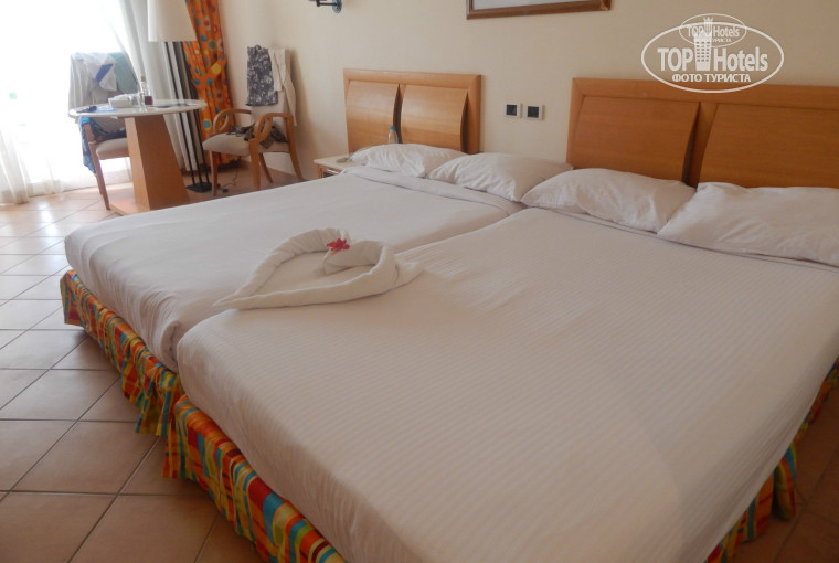 Общее впечатление на четверочку. Вид из ресторана красивый,т.к находится наверху.Территория большая,зеленая.Загорать можно у самого моря на песке на лежаках,у бассейна и просто на матрацах на траве. Номера большие,кровати огромные, в нашем номере не работал слив в душе, почистили в последний день,когда уже нажаловались русскоговорящей девушке опрашивающей туристов на пляже о проблемах. По телефону попадали на ресепшене на арабов,которые не понимали нашей проблемы( или делали вид,что не понимают). Питание отличное,разнообразное. Мы часто обедали на пляже,там есть отдельно кухня,но надо успеть,т.к. еды не хватает.Пиццу дают по маленькому кусочку русским, иностранцам по целой.В первую очередь заканчивается мясо и фри.Это про кухню на пляже.В основном ресторане всего хватает.Бывают морепродукты,осьминоги,кальмары. Есть два ресторана итальянский и китайский,в который нужно записываться заранее, напротив главного ресторана с 11 часов сидит человек и записывает. Если не придете на ужин,то нужно будет оплатить штраф 10 баксов. Об этом не предупреждают,но написано на инфо.доске.Еда там конечно так себе. В китайском советую заказывать телятину,в итальянском кальмары в кляре,греческий салат. Суп похож на пакетики магги, равиолли тесто с привкусом морепродуктов.Мороженое ,как на пляже ( это в китайском) ,но оно вкусное. В баре на улице есть отличный бармен по имени Тито, очень вежливый,ненавязчивый и внимательный. Мы ему платили чаевые и он нам напитки приносил,и кофе варил и приносил в нормальной чашке и коктейли в стекле. Всего за 1-2 доллара в день,хотя платить мы ему стали как раз после того,как он внимательно к нам отнесся. В дальнейшем мы с удовольствием перемещались за ним в бары,т.к. их перекидывают на разные места. Ни за что не ходите в спа, это не массаж,это развод на деньги. Поглаживают,похлопывают, никакого расслабления. И грязно как-то. Потом еще долго уговаривали и делали 5-минутный массаж уже качественно,чтобы заманить. Но там даже обстановка не располагает. Шумно,грязно,атмосферы никакой. Предыдущий комментарий про акулу писала туристка,с которой лично разговаривала именно в тот день,когда они ее видели. Мы в тот день как раз провалялись у бассейна,в море зайти не рискнули. Но слышали и от других.Конечно же арабы успокаивали и говорили,что это дельфин. Но отель расположен ведь недалеко от акульей бухты. Даже если она маленькая и не нападает приятного мало на нее наткнуться. На след. день купались с осторожностью не отплывая от понтона и недолго.Если бы я лично увидела меня бы точно кандрат хватил. Отдыхали компанией, отель скучный на наш взгляд в плане развлечений, вечером молодежь шла в кальянную ,где можно было потанцевать,но с музыкой там беда. Кто хочет подходит и копается в ноутбуке включая на свой вкус музыку. В отеле за 5 $ на человека можно съездить в Наама Бей,но лучше брать такси,чтобы не зависеть от времени.По деньгам компашкой еще и выгоднее можно съездить. Слышала про случаи утери полотенец пляжных, за утерю одного полотенца штраф 15$.Туалетную бумагу экономят . Анимация слабая, только Влад понравился. На экскурсии в этот раз не ездила,ничего сказать не могу. Про батискаф под водой спросила,который стоит у пляжных гидов 50 баксов, сказали не стоит этих денег.Номер убирали каждый день,даже без чаевых.Комаров в номере много,если о