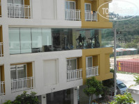 В номерах есть балконы. Метра 2 в длину и сантиметров 60 в ширину :) Вид с балкона на соседний корпус. Между нашим балконом и соседнем корпусом было метра 2,5. Так что вместо того чтобы любоваться видами, мы плотно занавешивали окно от чужих глаз.
