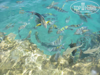 Пляж и море. О МОРЕ…...Зеленый цвет переходящий в тёмно синий, прозрачная вода, красивые рыбки (некоторые пугающие своими размерами и недобрым взглядом), осьминог, живущий в королевской лагуне в кораллах, крабы, цапли на камнях. Пишу и практически плачу Считаю достоинством отеля (огромное уважение опять же к архитекторам) как продуманы зоны для купания. Зоны двух морских лагун отделены от береговой линии, вода в них идеально чистая, когда на море большие волны в лагунах совершенно спокойная вода, очень удобно не только для купания детишек, но и взрослым. В лагунах на первом пляже дно выстлано бетонными плитами, коралки не нужны, глубина достаточная для плавания взрослому человеку, но в периоды отливов вода уходит и тогда глубина практически по шею. С 3-его по 5-й дней отдыха купались и загорали на пляже у королевской лагуны (местные здесь его называют русским пляжем почему то). Идеальное место для купания детишек детсадовского возраста и младшего школьного возраста. Глубина в первой половине лагуны начинается от 10 см и на протяжении метров десяти достигает по пояс. Я спокойно лежала и загорала на лежаке пока младший сын купался. Конечно хотелось бы чтобы лагуна была больших размеров. Небольшая лагуна с песочным дном есть и в конце 5-го корпуса, но там никого нет потому что далековато от цивилизации. Поскольку старший сын очень сдружился с командой аниматоров, настоял вернуться и купаться в лагуне на первом пляже. Бассейнов достаточно, кроме трех (у третьего корпуса глубина 1,25м вроде, у 5-го глубиной 1,25м, над рестораном достаточно глубокий), у третьего корпуса где основной бассейн есть ещё бассейн для малышей глубиной 40 см. У бассейнов отдыхает большая часть иностранцев. Мы ехали на море, просолиться так сказать, поэтому о температуре воды в бассейне сказать не смогу.