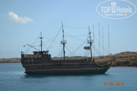 Вылет авиакомпанией Трансаэро, 14.09.2013 г., из аэропорта Казань, в 18.10, без задержек и суеты. Обращаю внимание, что на сайте авиакомпании Трансаэро за 36 ч до вылета открывается регистрация он-лайн. Я просто по электронной почте связалась со службой поддержки, и меня зарегистрировали на приличные места (в середине самолета). Перелет до аэропорта Ларнаки занимает 4 часа, так что прилетели с учетом разницы во времени в 22.00 по местному времени. В автобусе гид немного рассказала о стране, дала рекомендации, и где-то через час мы были в отеле. Заселение было очень быстрым. Я попросила тихий номер, повыше. Такой и дали - в старом корпусе, на 3-ем этаже (322 номер), с видом на дорогу, как я и хотела. Здесь многие пишут, что русских заселяют в новый корпус, но учтите, что напротив этого корпуса останавливаются на ночную стоянку автобусы БиблиоГлобус и порой бывает довольно шумно, так что считаю необходимым отметить сие обстоятельство. И вид из номера (смогли оценить только на утром, на следующий день) - просто шикарный - горы, море - красота и без всяких доплат.