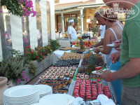 Питание брали все включено, в данном отеле это большой плюс .Отель расположен в 15-20 минутах ходьбы от деревушки Хаврос и ближе ни кафе ни магазинов нет, поэтому по жаре ходить обедать это довольно неудобно. А питание в отеле очень хорошее и разнообразное : завтраки и обеды и ужины понравились , можно выбрать блюда на любой вкус . Супы протертые, на любителя , зато остальные блюда очень вкусные. Мои и дочь и муж в еде "привереды" голодными не ходили. Шеф-повар в отеле очень хороший, старается угодить всем , поэтому в обед и ужин есть блюда и русской и французской и итальянской кухни. С 11 до 23 работает бар у бассейна здесь можно выпить чай , кофе, воду, напитки алкогольные местного производства без ограничения . Т.к. в ресторане есть дресс-код (не очень строгий ) , тем кому лень переодеваться к обеду, могут поесть в баре (хотя выбор блюд здесь ограничен) . Некоторые туристы были недовольны дресс-кодом, а я считаю это безусловным плюсом отеля, т к в ресторане не приходится" любоваться" голыми , волосатыми торсами (хватает и престарелых немок на пляже , загорающих топлес и выставляющих на всеобщее обозрение свои НУ ОЧЕНЬ СОМНИТЕЛЬНЫЕ ПРЕЛЕСТИ). Кстати, мужчинам, могут сделать замечание в ресторане., если они пришли в футболке без рукава.