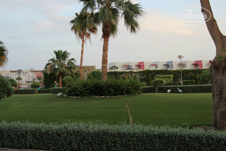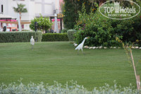 Территория красивая, ухоженная. Чуть заходит солнце - начинают полив. С утра пораньше выглянула на улицу - стригут кусты. По лужайкам прогуливаются белые птицы. Цветы цветут!! Красотища! Самолеты летают низко, но совершенно не напрягают!
