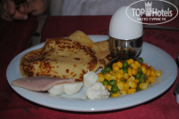 Отдельно - о питании. Оно полностью соответствуют понятию "шведский стол": огромное разнообразие зелени, закусок, фруктов (яблоки, апельсины, арбузы, клубника, дыни, мушмула). Всегда несколько видов очень вкусных горячих блюд.