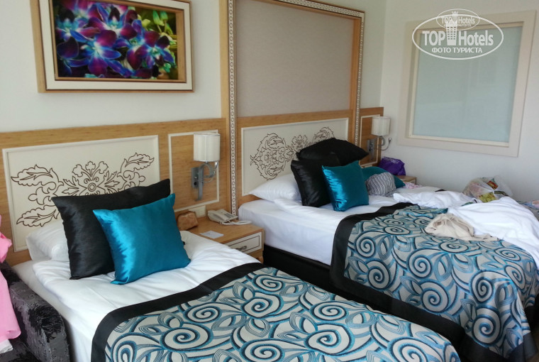 Встречали с цветами с шампанским и турецкими сладостями. Заселили быстро, разместили в 5 корпусе - номер нам понравился с видом на главный бассейн.