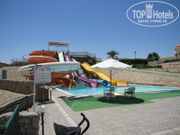 На пляж и с пляжа возили паровозиком или 4-х местными автобусиками. Есть водные горки, два бассейна, два пляжа.