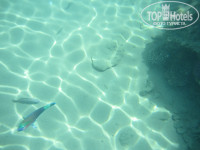 Отдыхали в этом отеле с 14 апреля по 23 апреля. Путёвки заказывали по акции "раннее бронирование", поэтому заплатили вполне бюджетную сумму 50000 руб. плюс 15$ с человека за въездную визу. Спасибо авиаперевозчикам "NORD WIND", туда и обратно вылетели по расписанию. Прилетели в Египет рано утром, нас стали оформлять в номера. Пришлось "повоевать", согласились только на третий номер, а так давали бунгало, которое мало того, что далеко расположено от главного корпуса, к тому же внутри было обшарпано, мебель старая, внутренние двери не закрывались и в соседний номер вход был свободен. Вид и с входа и с балкона был на такие же бунгало. Поэтому мы отказались от этого номера и нам предложили стандартный номер в 2-х этажном корпусе, но там идёт стройка, поэтому пыльно и шумно. На третий раз нам дали 1105 номер, где нас устроило всё. Номер чистый, неработающий телевизор сразу же заменили на работающий (два русских канала). Холодильник не работал, но нам он был не нужен, поэтому мы не обращались с этим вопросом. В сейфе сбился код по вине мужа, сразу пришли,, устранили и эту проблему. Вид с балкона был замечательный, просыпаясь утром, я видела море. У соседей по дому были комары, им пришлось купить фумигатор (дорого). Мы тоже пару раз пользовались, но своим, привезённым из дома. В ванной были большие рыжие муравьи, но мы их не трогали, они не трогали нас.