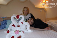Про украшения,заходим в номер после завтрака,а там лебеди в цветах,на Аленкиной кроватке бантик с цветами,мы своей горничной очень были довольны!