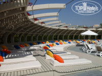 Территория огромная. Есть олимпийский бассейн, и бассейн с пальмами, аквапарк с 6 горками, пляжный волейбол, футбольное поле, теннисный корт и баскетбольная площадка.