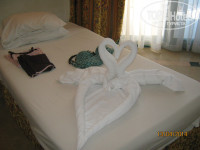 Уезжали мы 18.04.14,вечером и были довольны,потому что на пасху приехало огромное кол-во арабов с семьями, а отель и так переполен и ужасен.В 12 00 освободили номер,хотели срезать браслеты нам ,мы с казали что нет. Так и пили и ели целый день еще.